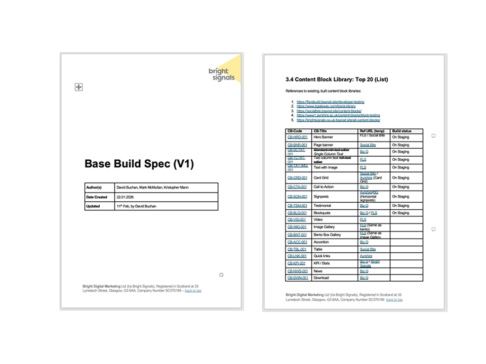 The specification sets out how content blocks behave, how fields are structured, how templates are assembled, our naming conventions, the project team roles and responsibilities, versioning, and basic things like where to find it online.